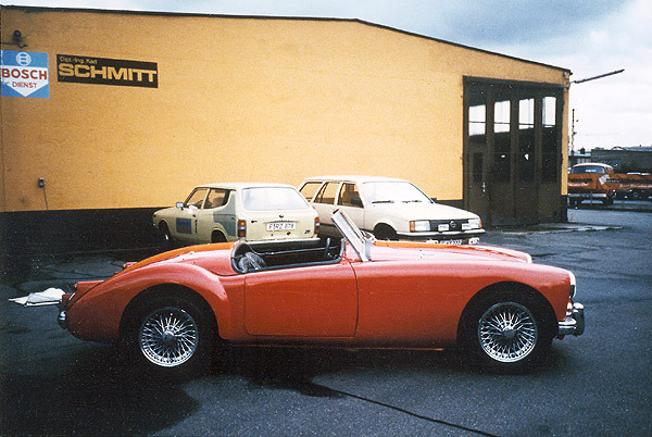 It will be a MG. Yes - a MG-A, because that too comes from England. For him the similarity and connection with the Healey was obvious. They were built by the same people in the same factory at the same time and the used ones were significantly lower prized....therefore every advertisement in the newspapers ( the preferred paper then was the "FRANKFURTER RUNDSCHAU") was properly studied on Friday afternoon. The result was a testride in a MG-A 1600 roadster, manufactured 1961, in the Spring of 1969.